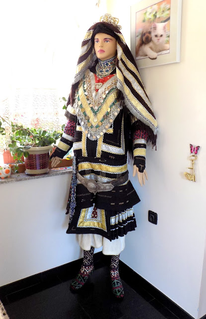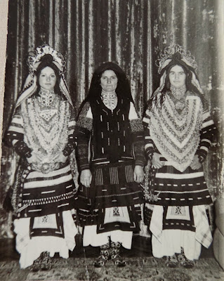 Οι Σαρακατσιάνοι πλειότερο οι γ΄ναίκες μέχρι το 1965, τα΄σερναν τα ρούχα, τα παλιακά τα ρούχα και κάποιοι έσυραν και μέχρι το 1970. Μετά έβαλαν τα Βουλγάρικα, τα Ευρωπαικά. Έρχονταν πολλοί εδώ απ΄ την Ελλάδα και αγόραζαν τα παλιά τα ρούχα τζάμπα και τα πούληγαν. Δεν θυμάμαι ποιά χρονιά, …είχε έρθει ένας εδώ απ΄το Καζανλάκ. τον είχε φέρει κι αγόραζε ρούχα. Μάνα φέρε δυό ζευγάρια κάλτσες και πατούνες. Λέει, τι χρωστάω, …λέω δεν μ΄χρωστάς, δώρο στα δίνω. Εγώ δεν πούλησα τίποτα. Στο σπίτι έχω φκιαγμένη μια γυναικεία φορεσιά, φρετζωμένη κανονικά, νύφη. Την είχε φκιασμένη η μάνα μ΄ και την κράτησα. Τις παλιές τις φορεσιές τις έχω, …τις έχουμε βαλμένες στις ντουλάπες και υφάσματα απ΄ ύφαινε η μάνα μ΄ και βελέντζες. Απ΄ τη βαβά μ΄ ικιά τα χρόνια στο εργοστάσιο εδώ που καθάρ΄ζα μίνια αποθήκη, βρήκα έναν αργαλειό που είχε η μάνα μ΄. Μου΄ρθε κρίμα να τον απετάξω και τον κράτησα, …λέω ας στέκεται. Έναν σοφρά που κάθομασταν να φάμε από κιά τα χρόνια, …μα κι είναι απ΄ τα 1958 έτος, τον έχω κρατήσει κι αυτόν.